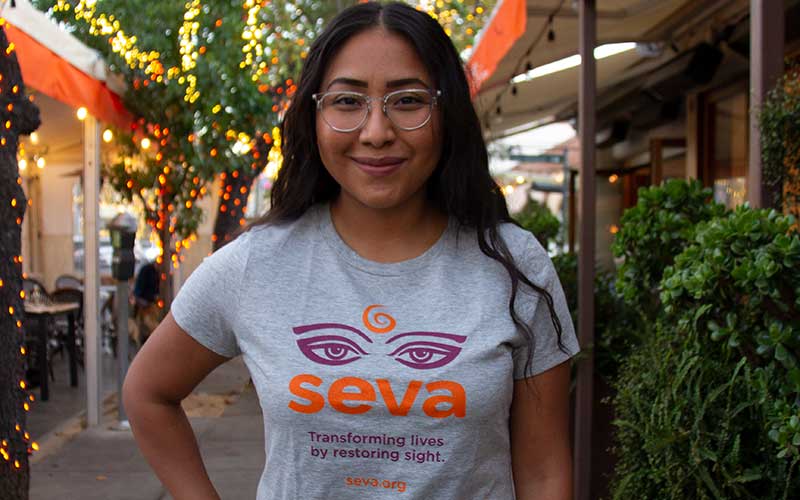 Soft t-shirt featuring the Seva logo brightly on the front.